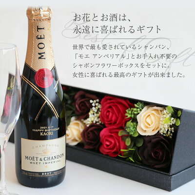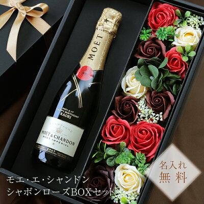 敬老の日 名入れ シャンパン モエ・エ・シャンドン 【 モエ ブリュット アンぺリアルハーフ & シャボンローズBOXセット 】 ギフト おしゃれ 人気 モエ ランキング スパークリングワイン ワイン 結婚記念日 結婚祝い 誕生日 女性 375ml 送料無料 5営業日出荷