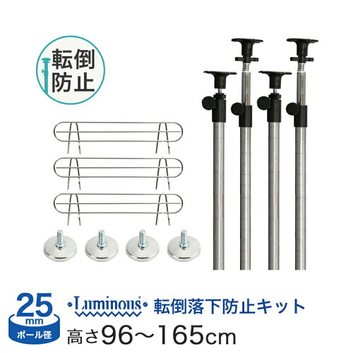 【送料無料】ルミナス スチールラック パーツ 延長突っ張りポール 落下防止セット長さ96〜165cm 4本 ポール径25mm / 落下防止柵 幅60 奥行60 タイプ用 3個 / 円形アジャスター4個 ADD-P2590J-AP-SB60