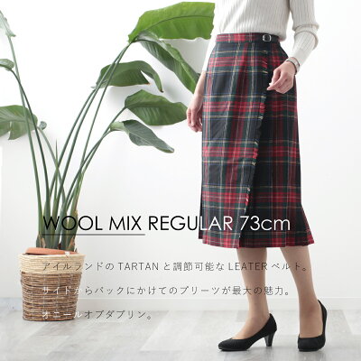 セール SALE O'NEIL OF DUBLIN オニール オブ ダブリン 73cm セミロング ミモレ丈 ラップ キルトスカート アイルランド製 レディース タータン チェック ウールミックス プリーツ ギフト