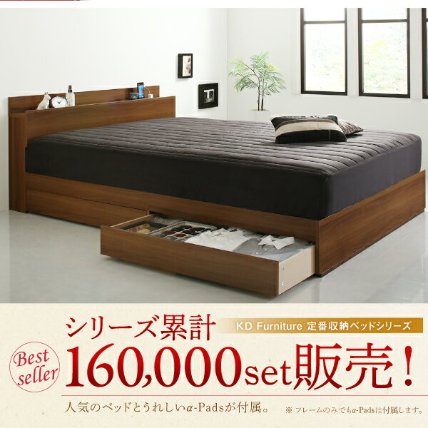 ダブルベッド 黒 茶 整理 収納付き ベッド 国産 日本製 カバーポケットコイルマットレス付き セット 新生活におすすめシーツとでお買い得 棚・コンセント付き整理 収納 ベッド( 幅 :ダブル)( 奥行 :レギュラー)( フレーム色 : ウォルナットブラウン 茶 )( 寝具