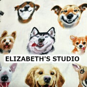 【USAコットン】ELIZABETH'S STUDIO 笑う犬柄生地 布 アニマル エリザベスズスタジオ エリザベススタジオ 50cm単位